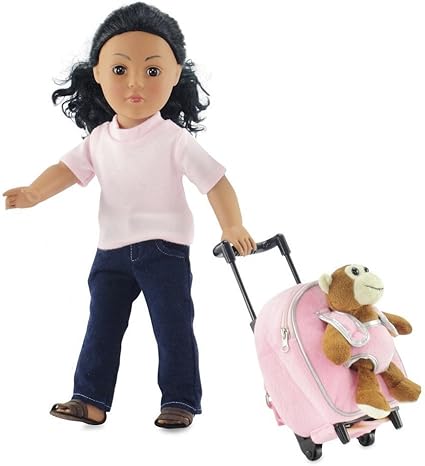 - Emily Rose 18 Inch Doll Rolling Backpack Toddler Luggage W Detachable Monkey Fits American Girl Dolls Amazon Sg Sports Fitness Outdoors