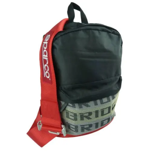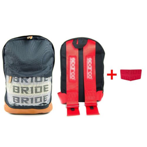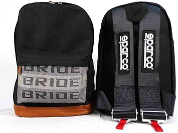Its constructed out of resilient and top polymer materials the bride backpack is very tough. The bride and sparco styled back pack with black racing harness straps will draw peoples interest. Bride backpacks are a must have for all jdm fans.