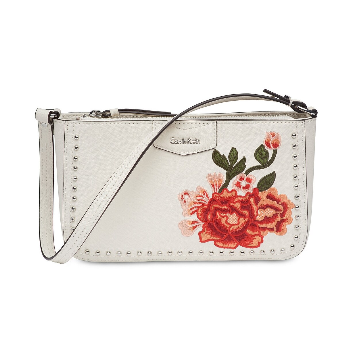 Shop Calvin Klein Leather Floral Embroidered Studded Shoulder Bag Floral White Overstock 28125550 North Face Small Shot Backpack