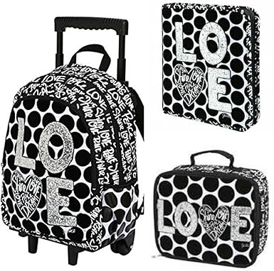 Amazon Com Justice Love Polka Dot Rolling Backpack Binder Lunch Tote Combo Clothing Justice Mermaid Rolling Backpack