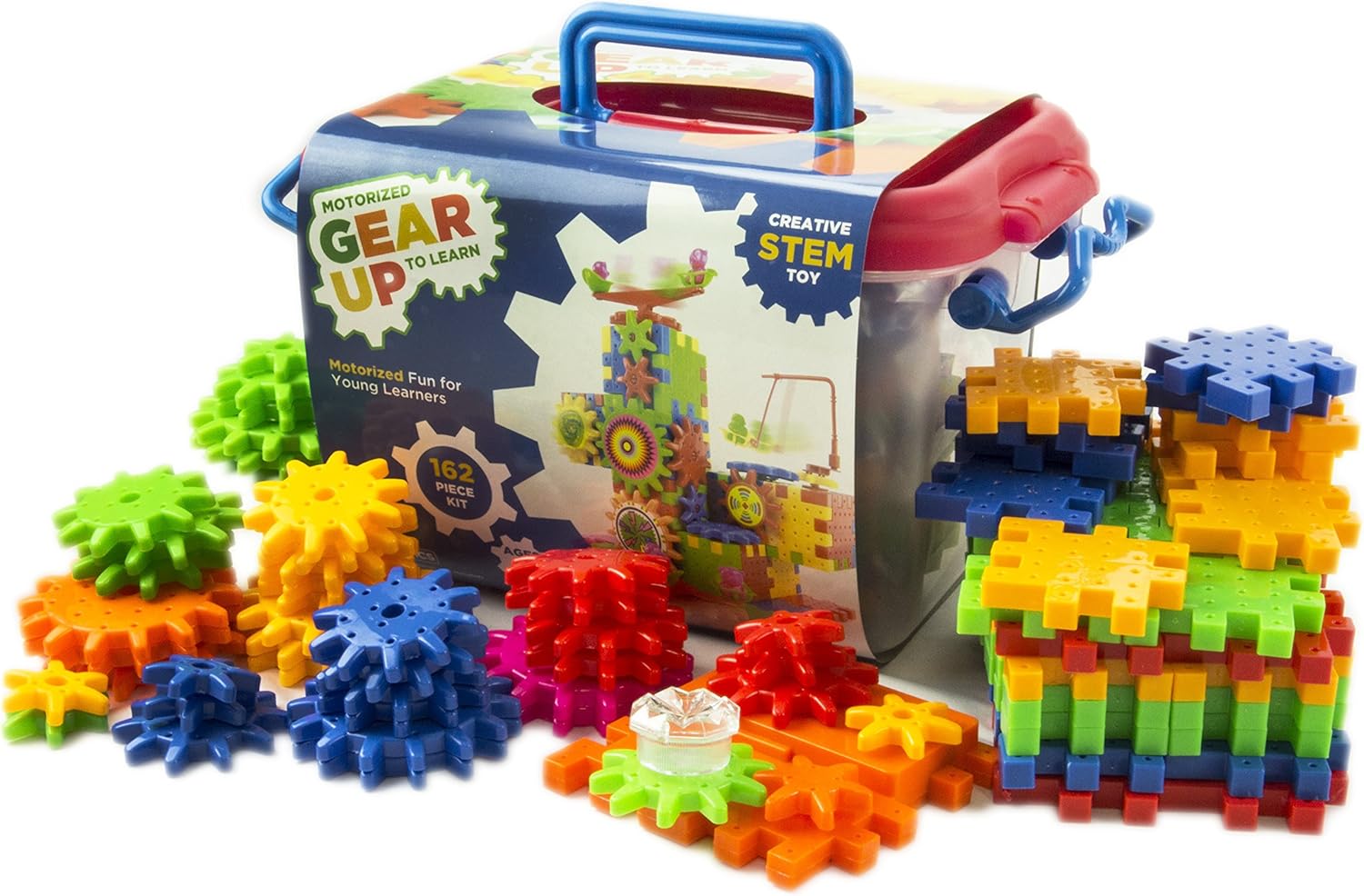 Amazon Com Motorized Gear Up To Learn 162 Piece Interactive Building Toy Set Colorful Interlocking Plastic Blocks Battery Powered Motor Spinning Gears Creative Stem Educational Kit Fun For Kids Toys Games How To Insure Camera Equipment For Travel