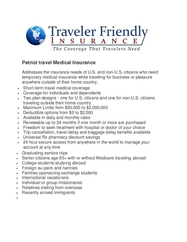 Patriot travel medical insurance coverage Indeed recently has been hunted by consumers around us, maybe one of you personally. People are now accustomed to using the net in gadgets to view video and image information for inspiration, and according to the name of the post I will discuss about Patriot Travel Medical Insurance Coverage.