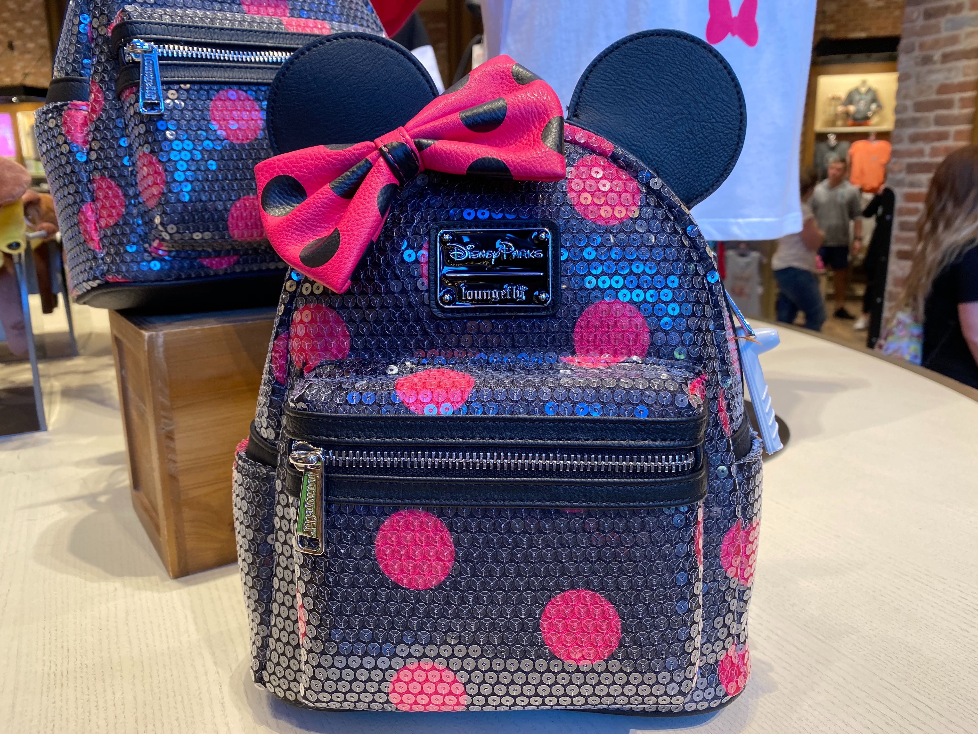 - Disney Parks Black Polka Dot Sequin Minnie Mouse Bow Bookbag Backpack Disney Backpacks Sequin Backpack Disney Bag