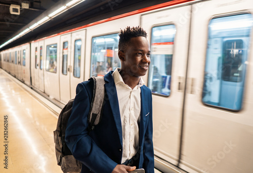 African American Businessman Wearing Blue Suit And Backpack In Metro Subway Business Concept Buy This Stock Photo And Explore Similar Images At Adobe Stock Adobe Stock Badlands Backpacks Amazon